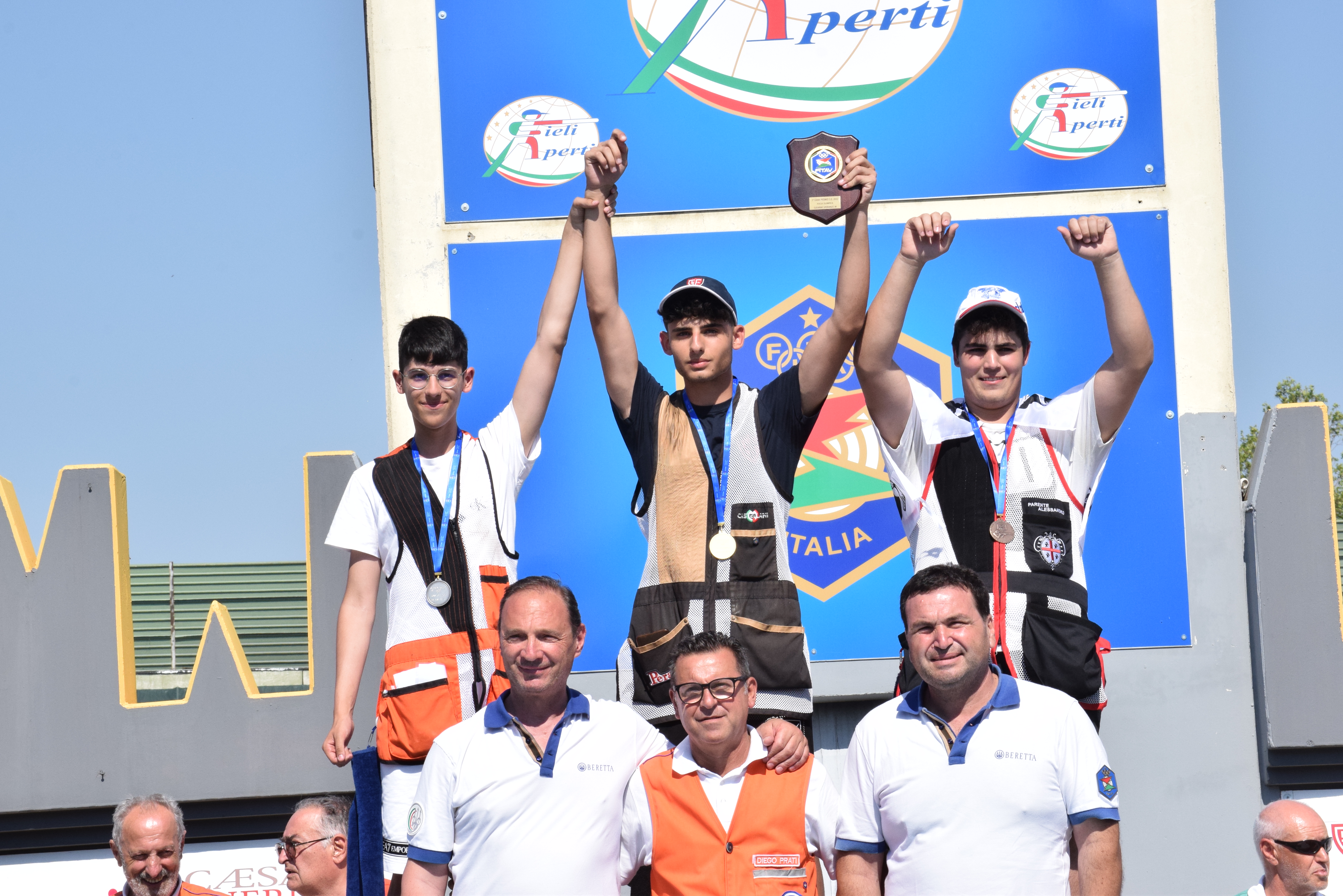 Per la Fossa Olimpica il dato di partecipazione è arrivato a 247 presenze. Tra gli Junior Maschili il migliore in gara è stato Comiso Luca Salinaro. Il giovane pugliese ha concluso le cinque serie di qualificazione con il punteggio di 117/125 che gli ha permesso di spareggiare per l’ingresso in finale, ottenuto con +1. Nella corsa alle medaglie ha saputo dare valore alla opportunità conquistata e ha condotto il sestetto sin dai primi lanci. Alla fine con 46/50 si è messo al collo la medaglia d’oro lasciandosi alle spalle il lombardo Luca Gerri, medaglia d’argento con 42/50, ed il campano Gianmarco Barletta, medaglia di bronzo con 33/40.