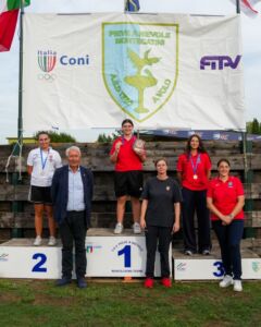 Nella scorsa estate Guadalupe Lamagna si era ritagliata il ruolo di protagonista nel segmento pugliese dell’Uno d’Oro e nelle considerazioni che la giovanissima atleta aveva formulato dopo quella gara sulle pedane di Spinella aveva fatto comprendere di guardare con convinzione alla partecipazione al Campionato italiano del Settore Giovanile. Detto, fatto. Perché la quindicenne di Andria (ritratta al centro della foto di copertina insieme alle compagne e ai compagni di squadra e all’Istruttrice Angela Maggi) a Montecatini ha saputo conquistare il titolo tricolore stagionale delle Giovani Speranze di Fossa Olimpica guadagnando il transito alla qualifica Juniores per la stagione 2026. All’appuntamento toscano di settembre Guadalupe Lamagna aveva esordito con sicurezza nella prima giornata, poi una lieve flessione di rendimento nella seconda giornata, se non aveva certo messo in discussione la qualificazione alla finale, aveva però costretto l’atleta pugliese, allieva di Cosimo Di Chiano, (approdata a quota 90/125) ad un impegnativo reset in vista del round decisivo. Ma in quella finale a un colpo Guadalupe Lamagna svettava poi brillantemente conquistando il titolo con 17 centri davanti al 16 di Lisa Taccola e al 14 di Sara Tursi.