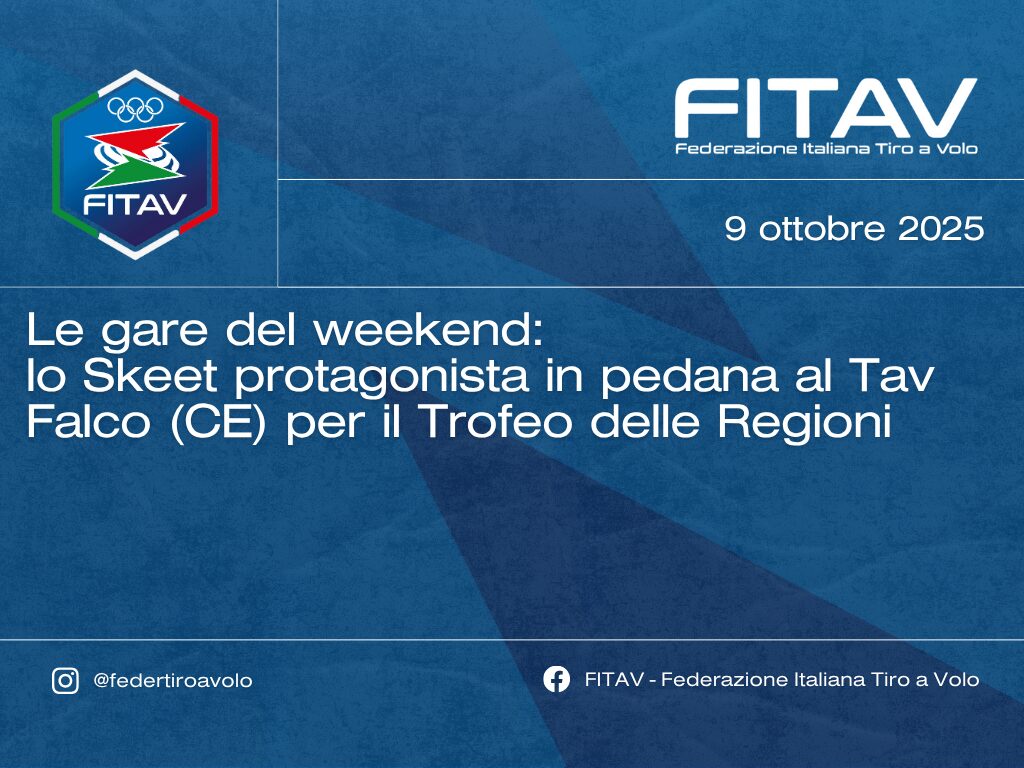 Mentre in Grecia, presso l’impianto di Malakasa, gli Azzurri dello Skeet saranno impegnati nel Campionato del Mondo, in Italia gli agonisti del Pull e del Mark chiuderanno la seconda settimana di ottobre con la competizione valida per l’assegnazione del Trofeo delle Regioni della specialità.