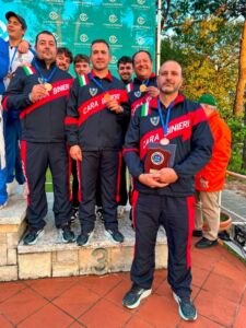 Dobbiamo riconoscere di essere stati bravi perché i ragazzi hanno dato agonisticamente il meglio di sé proprio quando contava: nell’ultima serie. Ed è in quel momento della gara che abbiamo tradotto in vittoria le buone sensazioni. È bello considerare che il punteggio più alto in quell’ultima serie, un 25/25, lo ha totalizzato Lorenzo Felici, giovanissimo neo-tesserato della Marina, e un’altra giovanissima, Sofia Gori, che è subentrata ad Alfredo Caloro a metà gara con un avvicendamento che avevamo concordato, ha contribuito con 24. Non è marginale in questa considerazione che Lorenzo sia figlio d’arte di quel Franco Felici che nel recente Campionato italiano di Trap a Uboldo ha conquistato la medaglia di bronzo tra gli Eccellenza. Quanto alla composizione della squadra, secondo me si verifica un fenomeno bellissimo quando fai lavorare all’interno dello stesso gruppo atleti molto giovani e atleti con più esperienza, perché i più giovani ovviamente attingono dalle maggiori conoscenze degli atleti più esperti e i cosiddetti veterani del gruppo sono motivati a far sempre meglio perché vedono quella volontà di fare il risultato e di mettersi in mostra che è tipica appunto dei più giovani. Non possiamo negare che in gara c’erano molte compagini anche più forti della Marina, ma il regolamento della Coppa dei Campioni, con la ripartenza da zero nell’ultima serie per le prime dodici formazioni qualificate, offre l’opportunità anche di ribaltare i pronostici e il nostro gruppo, con questa miscela di esperienza e giovanile esuberanza ha colto quell’opportunità.