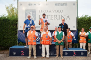 Michele Poeta sul gradino più alto del podio di Seconda categoria al Campionato italiano di Skeet dello scorso settembre