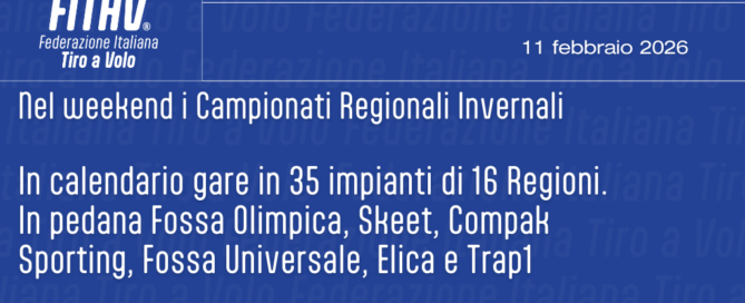 Nelle giornate di sabato 14 e domenica 15 febbraio si è svolto al Tav Laterina (AR) il Campionato Invernale di Sporting, gara che ha messo a confronto 255 tra i migliori specialisti italiani del percorso caccia itinerante e ha fornito una fotografia del livello tecnico generale nel pieno della la stagione fredda. Vincitore del Titolo di Eccellenza Simone Macucci di Radda in Chianti (SI) con 93/100, migliore anche in Assoluta, oro Ladies a Katiuscia Spada di Fabro (TR) con 87/100 e primo tra gli Junior Mattia Degli Antoni di Passirano (BS) con 87/100. Nella gara societaria a trionfare sono state le Squadre del Tav La Torre (PI) con 507/600 (Tipologia A) e del Tav Olimpico Foligno con 266/300 (Tipologia B).