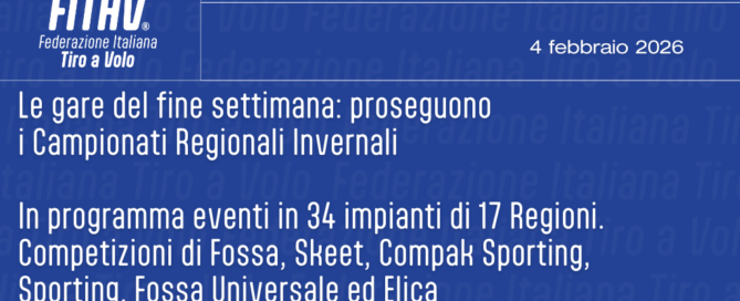 Nel fine settimana è andato in scena al TAV San Martino Rio Salso (PU) il Campionato Invernale di Doppietto della specialità amatoriale del Compak Sporting. Tra i 109 agonisti in pedana l'oro di Eccellenza è andato a Nicola Amadei di Bedizzole (BS) con 144/150, quello Lady a Marlena Wroblewska di Vinci (FI) con 116/150 e tra gli Junior ha trionfato Samuel Ligi di Fermignano (PU) con 133/150, miglior punteggio in Assoluta per il tiratore di Prima Categoria Luca Lipreri di Porto Mantovano (MN) con 146/150