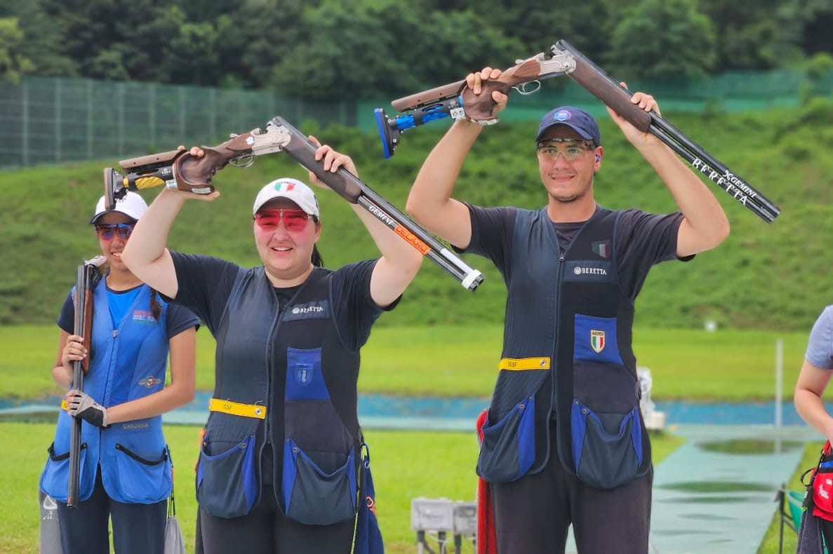 Complessivamente il giudizio sull’esito della gara è assolutamente positivo. In allenamento tutte le ragazze e tutti i ragazzi erano nella condizione migliore. La presenza di quattro elementi in finale – due atlete e due atleti – forse avrebbe dovuto significare anche qualche medaglia in più. Ma c’è sempre quella che chiamiamo sfortuna e c’è un po’ di stress da parte delle ragazze e dei ragazzi: fa parte del gioco. Ad esempio, a proposito di imprevisti, a Cristian Giudici si è rotto il fucile alla quarta serie dopo che aveva fatto un ottimo 71. Ha perso cinque o sei piattelli per quel problema al fucile che non esplodeva il secondo colpo, ma senza quell’inconveniente Cristian avrebbe potuto accedere senz’altro alla finale. Alla valutazione positiva della gara contribuiscono naturalmente i traguardi ottenuti: il titolo mondiale di Mixed Team di Sara Bongini e Andrea Galardini e il bronzo individuale dello stesso Galardini che ha conquistato il titolo a squadre con Francesco Bernardini e Marco Coco e poi l’argento prestigioso a squadre di Sara Bongini, Viola Picciolli e Damiana Paolacci. Mi piace davvero sottolineare il grande risultato che abbiamo ottenuto nel Mixed Team. Oltre alla brillante vittoria di Sara e Andrea, mi ha gratificato molto che Viola Picciolli e Francesco Bernardini abbiano sfiorato l’accesso alle finali dopo aver meritato pienamente sul campo la partecipazione alla gara. Senza trascurare che praticamente un mese fa a Suhl con Damiana Paolacci e Marco Coco avevamo già stabilito il record mondiale in quello stesso evento.