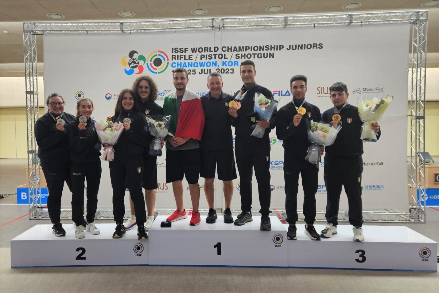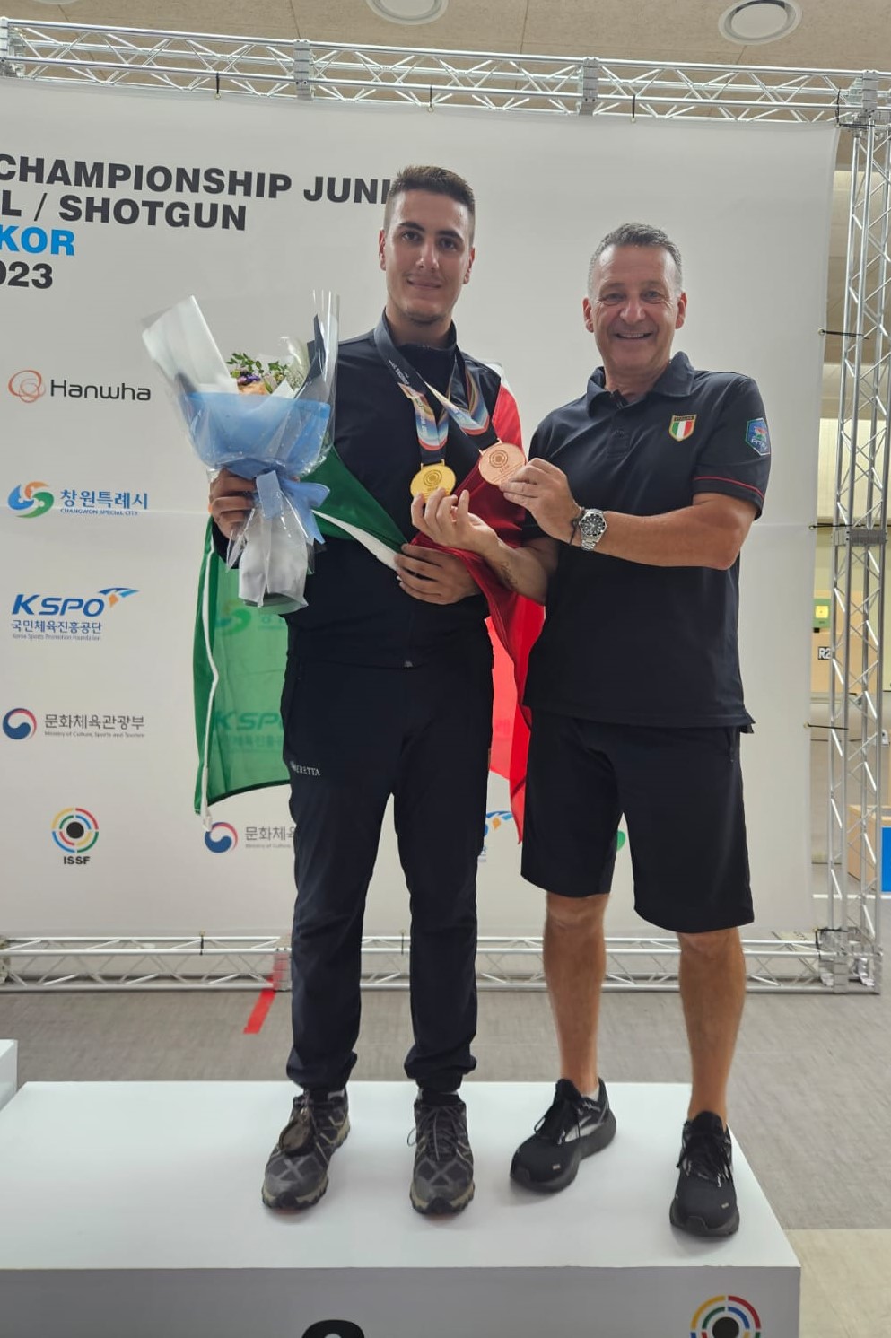 Sandro Bellini e il Preparatore atletico Carlo Alberto Zandomeneghi con la squadra azzurra di Skeet presente al Mondiale di Changwon